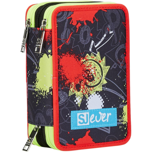 SJ Ever Astuccio Scuola 3 Zip, Rosso, PlayJam Boy, Portapenne Triplo Scomparto Completo Di Penne, Matite, Colori, Accessori Zaino, Elementari, Medie, Bambino