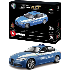 Bburago propone un autentico kit di montaggio per realizzare la replica in scala 1:24 dell’Alfa Romeo Giulia utilizzata dal corpo di Polizia. Il modello è progettato per riprodurre con grande fedeltà le linee, i dettagli e le caratteristiche della vettura reale. Prodotto con licenza ufficiale Polizia e Alfa Romeo.