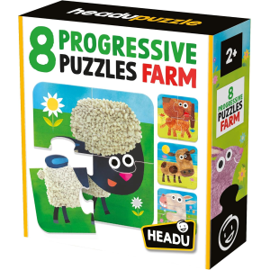 HEADU - 8 Progressive Puzzle The Farm - Grandi pezzi adatti ai più piccoli - Puzzle Educativo per Bambini dai 2 ai 4 anni, Made in Italy | MU55515