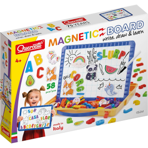 Quercetti Magnetino Letters Lavagna per Bambini 4-8 Anni con Lettere Magnetiche per Bambini, Lavagna Cancellabile con Piedini, Giochi Educativi, Made in Italy