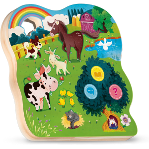 Base elettronica in legno; sensori touch; versi, filastrocche e quiz sulla fattoria
