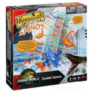Contenuto della confezione: tabellone di gioco a tema Jurassic World, pedine scimmie, carte azione, ostacoli e accessori interattivi