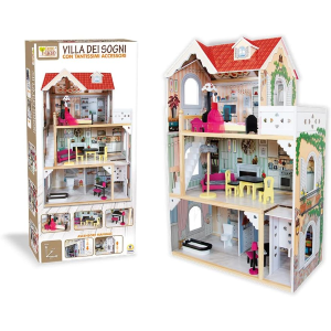 -Qualità superiore in vero legno: La Casa delle Bambole Villa dei Sogni è realizzata in legno solido, rendendola molto più resistente della plastica e garantendo lunga durata. Le finiture curate, i dettagli dipinti e la robustezza della struttura la trasformano in un elegante pezzo d’arredo, oltre che in un gioco.