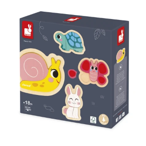 Il set "4 Puzzles Evolutivi – Giardino" è pensato per accompagnare i bambini dai 18 mesi nella scoperta del mondo che li circonda, con un gioco che evolve insieme alle loro capacità. Ogni puzzle è realizzato in legno di alta qualità, con pezzi grandi, spessi e facili da afferrare, perfetti per le mani dei più piccoli.