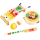 Include 4 strumenti musicali: tamburello, maracas, xilofono e castagnette (a seconda della versione).