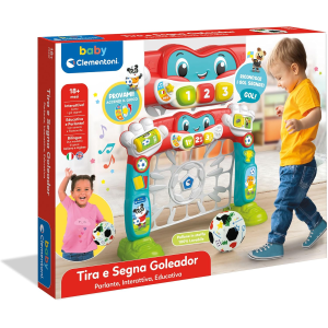 Tira e Segna Goleador di Baby Clementoni è una porta da calcio elettronica parlante pensata per bambini dai 18 mesi in su. Lanciando la palla nella rete, il sensore riconosce i tiri, conta i gol e incoraggia il bambino con luci, suoni e frasi in italiano e inglese, unendo divertimento e apprendimento. La porta interattiva aiuta a sviluppare la coordinazione occhio-mano, la manualità e la comprensione causa-effetto, favorendo anche l’apprendimento dei numeri e dei colori. Il gioco include un pallone lavabile di 11 cm, una rete con contatore automatico, tasti, luci, canzoncine e feedback sonori. Progettato e sviluppato in Italia, è pronto all’uso grazie alle batterie incluse, offrendo un’esperienza di gioco educativa che stimola movimento, fiducia in sé stessi e sviluppo cognitivo.
