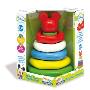 Il gioco Mickey Mouse Stacking Rings della linea Baby Clementoni ispirato a Mickey Mouse di Disney è un classico gioco ad anelli impilabili pensato per bambini dai 6 ai 36 mesi. Il bambino può impilare gli anelli colorati di diverse dimensioni sulla base centrale sviluppando coordinazione mano occhio e capacità motorie. Il design ergonomico degli anelli è studiato per essere facilmente afferrato dalle mani dei più piccoli mentre le diverse forme e superfici stimolano il tatto e la curiosità. Il gioco aiuta a riconoscere colori e dimensioni e favorisce lo sviluppo delle prime abilità di classificazione e impilamento offrendo un’esperienza di gioco semplice sicura e divertente.