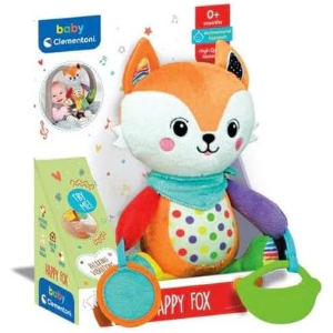 Clementoni Baby - Easy-Peasy Soft Fox, Peluche da Viaggio Bambini 0+ Mesi, Sonaglino Frusciante con Pendente Mordicchioso, Pinza per Passeggino per Passeggino E Auto, Lavabile in Lavatrice, 17623