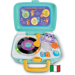 VTech Wisky, Micio Giradischi, Giradischi per Bambini, 5 Dischi Fronte-Retro, Regolazione Volume, Valigetta Inclusa, 6 Canzoni, Lingua Italiana, Batterie Incluse, 1-4 Anni
