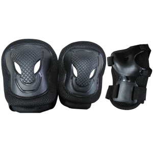 Le protezioni sono realizzate con una struttura resistente e imbottitura interna confortevole, studiata per assorbire gli impatti senza limitare i movimenti. Le fasce regolabili con chiusura in velcro assicurano una vestibilità stabile e personalizzabile, permettendo di adattare facilmente il set alla corporatura dell’utilizzatore.