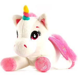 Scopri il dolce e magico Baby Unicorn Pegasus, un peluche steso da 35 cm che incanterà grandi e piccini! Con il suo corno arcobaleno e le ali glitterate, questo unicorno è pronto a portare un po’ di magia e colore nella tua casa. Perfetto per essere appeso grazie all'elastico integrato, può diventare anche una decorazione unica per la cameretta o il giardino!