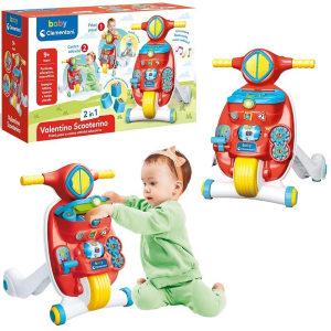 Il Valentino Scooterino 2 in 1 della linea Baby Clementoni è un gioco educativo pensato per accompagnare i bambini durante i primi passi e stimolare l’apprendimento attraverso il gioco. Grazie alla sua doppia funzione può essere utilizzato sia come supporto per imparare a camminare sia come centro attività ricco di elementi interattivi che intrattengono e stimolano la curiosità del bambino.Il pannello frontale è dotato di pulsanti, luci, suoni e attività manuali che aiutano a sviluppare coordinazione, percezione sensoriale e capacità motorie. Le diverse funzioni educative introducono in modo semplice e divertente lettere, numeri e nuove parole, rendendo l’esperienza di gioco coinvolgente e formativa.Lo scooterino è progettato con colori vivaci e materiali resistenti, ideali per garantire sicurezza e stabilità durante l’utilizzo. Le forme da incastrare e le attività meccaniche stimolano la manualità e il ragionamento logico, accompagnando il bambino nelle prime fasi della crescita.Questo gioco è adatto a bambini a partire dai 9 mesi ed è un’ottima idea regalo per compleanni, festività o altre occasioni speciali. Il Valentino Scooterino rappresenta un mix perfetto tra divertimento e apprendimento, pensato per favorire lo sviluppo motorio e cognitivo dei più piccoli.