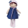 Il suo vestitino blu con polvere di stelle e il nastrino rosa sul collo le conferiscono uno stile elegante e delicato. I capelli bruni sono completati da una cuffietta floreale coordinata. La piccola luna ricamata sul vestito brilla al buio, creando un effetto magico. L’imbottitura è realizzata in poliestere riciclato.