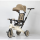 Triciclo evolutivo: sedile girevole reclinabile, schienale imbottito, cintura di sicurezza, capote pieghevole in tessuto, manubrio direzionale regolabile e rimovibile. Pedali rimovibili. Le ruote posteriori si possono unire al centro in posizione bicicletta pedagogica.